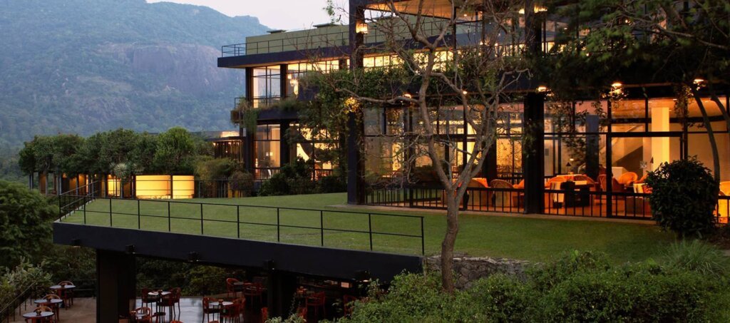 A masterpiece of eco-modernist architecture by Geoffrey Bawa, seamlessly blending into the rocky forest hillside.